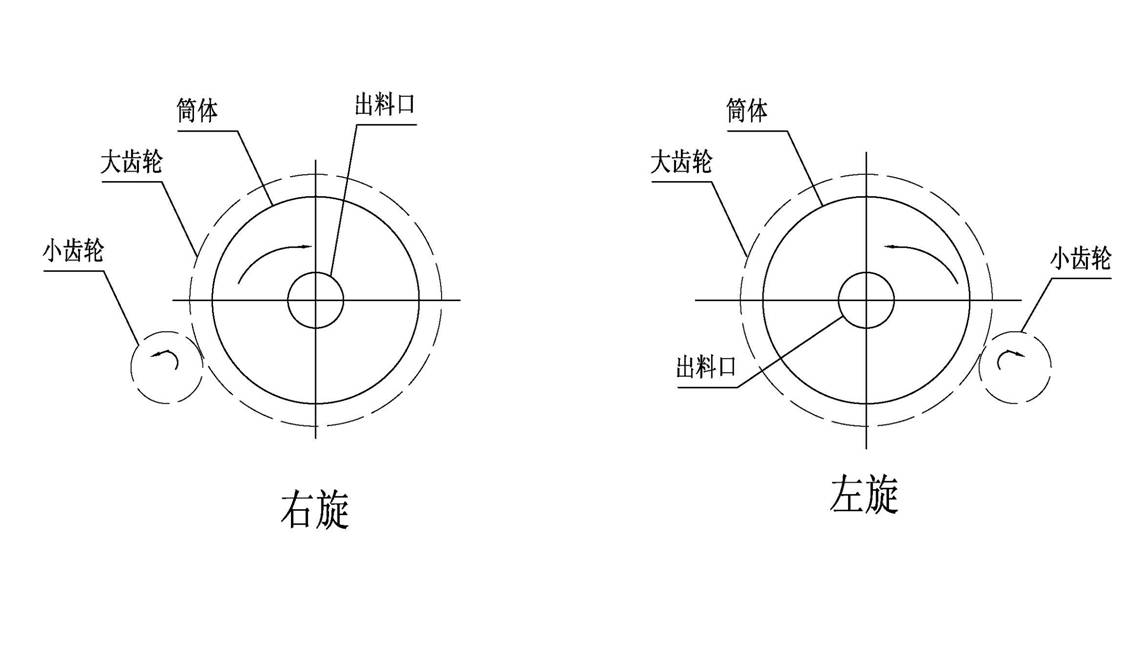 有許多客戶經(jīng)常會問,怎么才能正確的判斷球磨機(jī)運(yùn)轉(zhuǎn)時(shí)是左旋還是右旋,今天河南豫暉礦山機(jī)械有限公司技術(shù)人員以圖為為例為大家解這個(gè)因惑:要想判斷球磨機(jī)是左旋還是右旋,要從球磨機(jī)出料口(靠近大齒輪一端)向進(jìn)料口方向看,筒體逆時(shí)針旋轉(zhuǎn)為左旋,筒體順時(shí)針旋轉(zhuǎn)為右旋;在布置圖上,左旋布置時(shí),傳動部分(過橋)在筒體右側(cè);右旋布置時(shí),傳動部分(過橋)在筒體左側(cè)。如下圖所示: